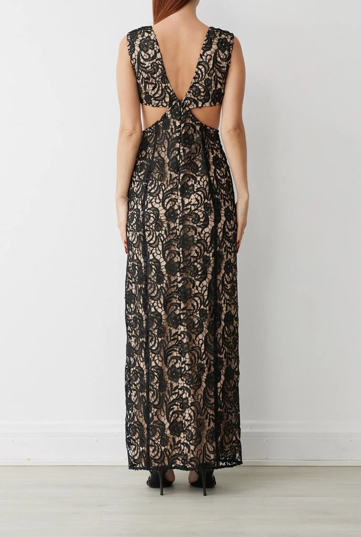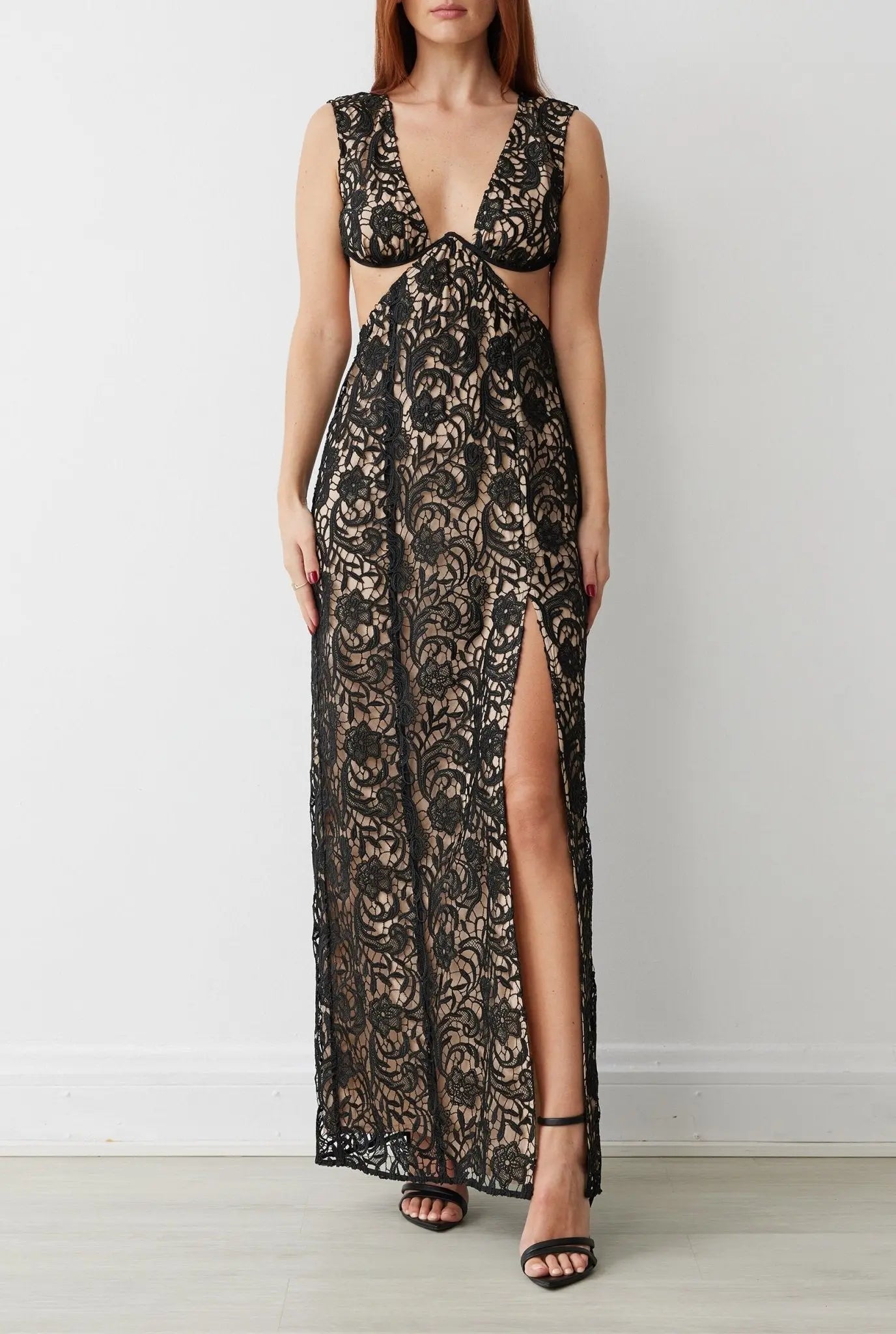All product imagery and descriptions have been kindly provided by Boskemper. Run, don't walk! This one ain't going to last long. The Meggie Dress now in maxi length with thigh split & the intricate open designed lace. Features wire bust, cheeky front & back cut out at the smallest of your waist