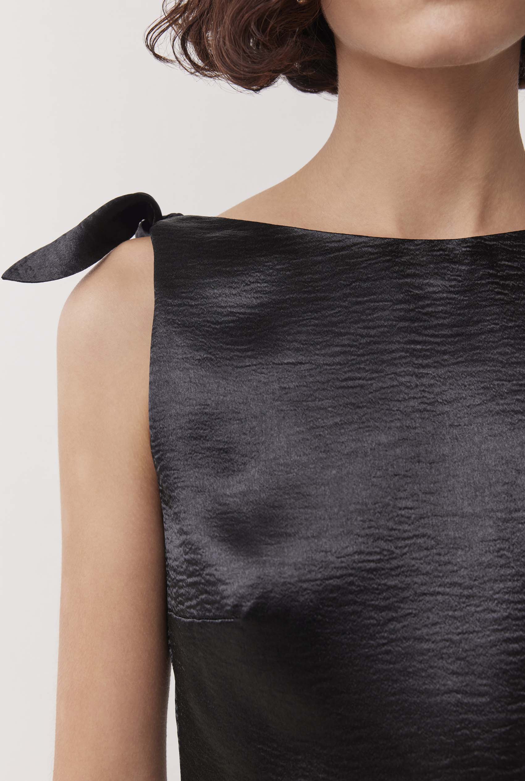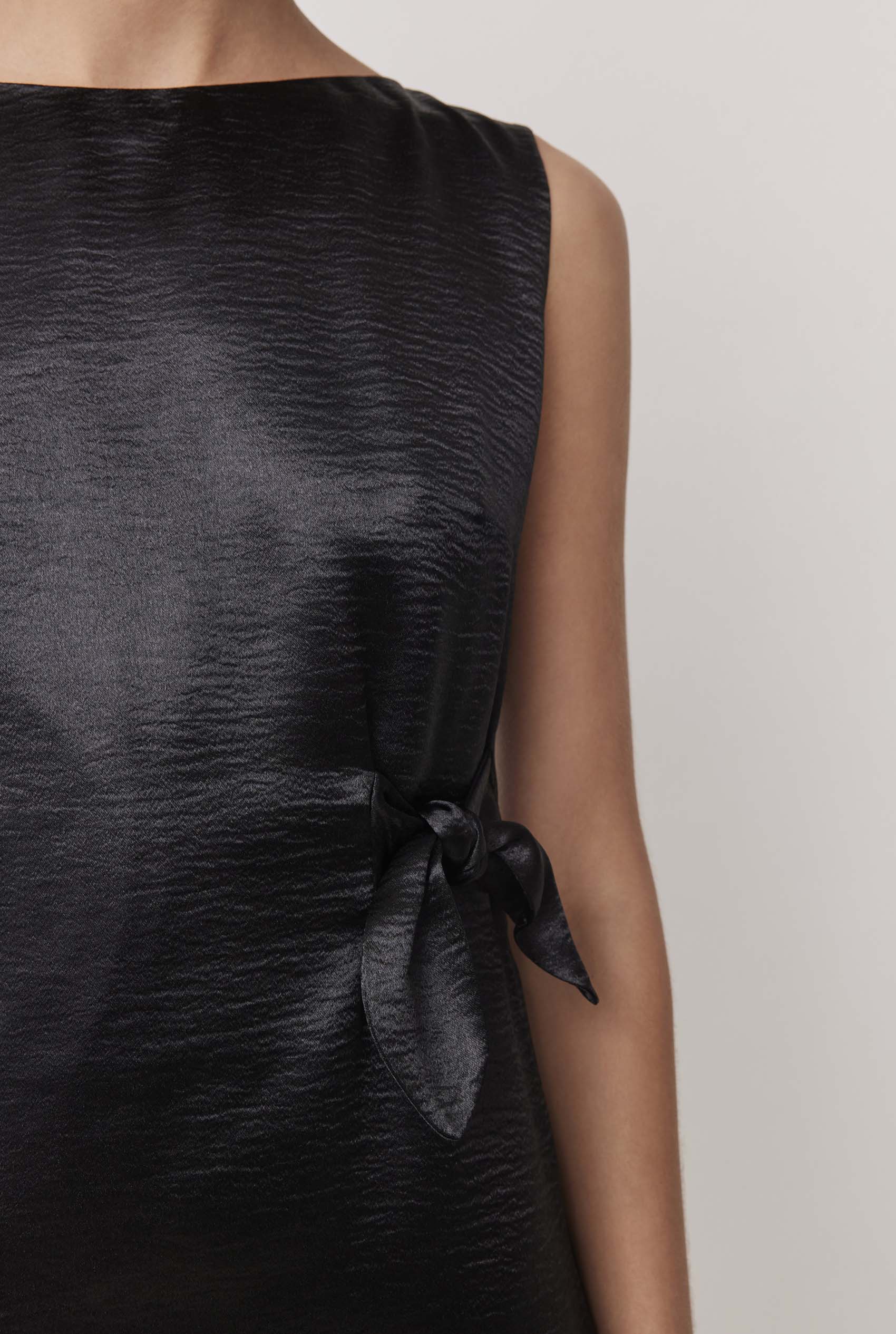 All product imagery and descriptions have been kindly provided by Boskemper. Turn heads in the Olivia Dress in Noir. This mini dress features an asymmetrical boat neck and four stylish ties for a flattering edge. It's your go-to for making an effortless statement
