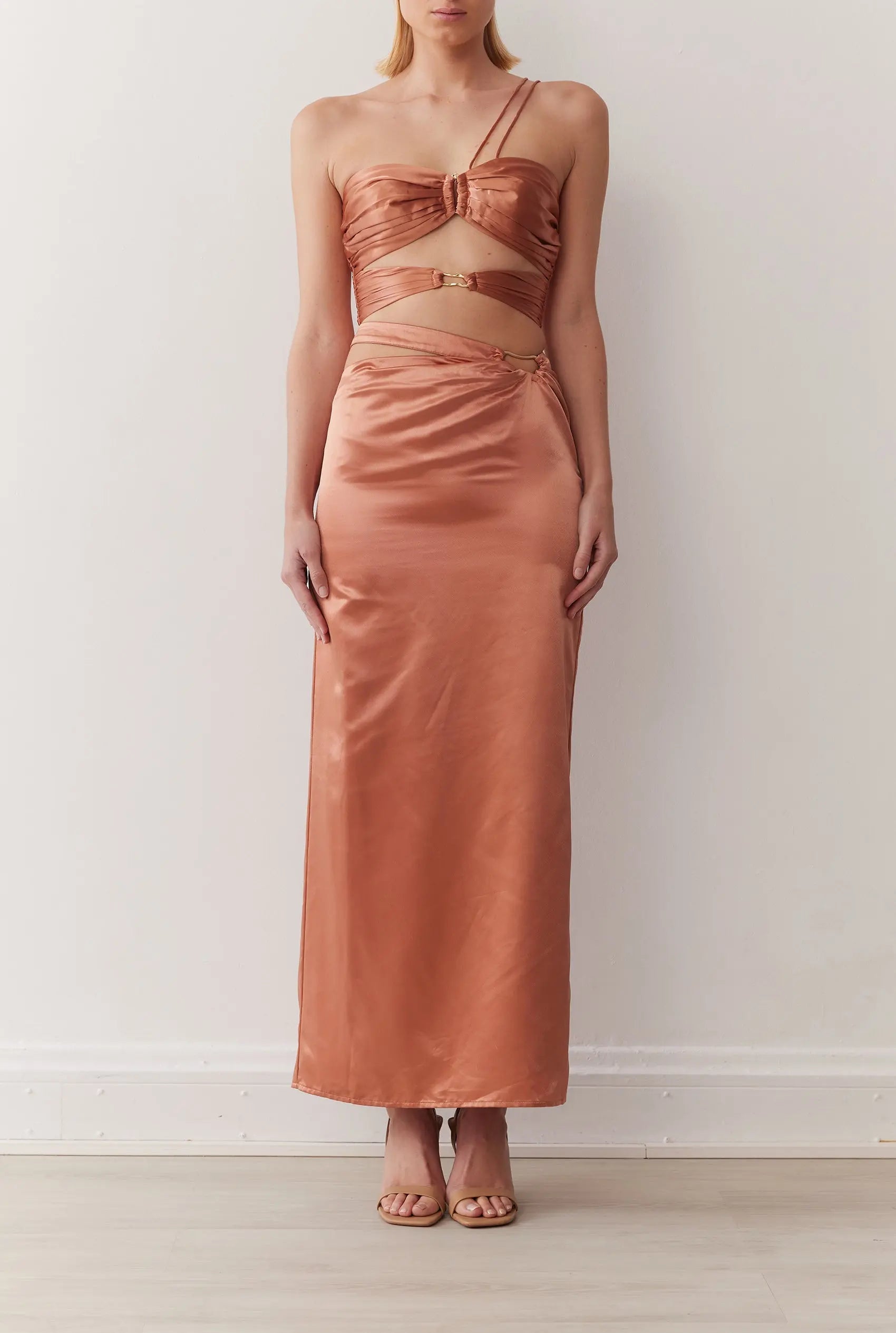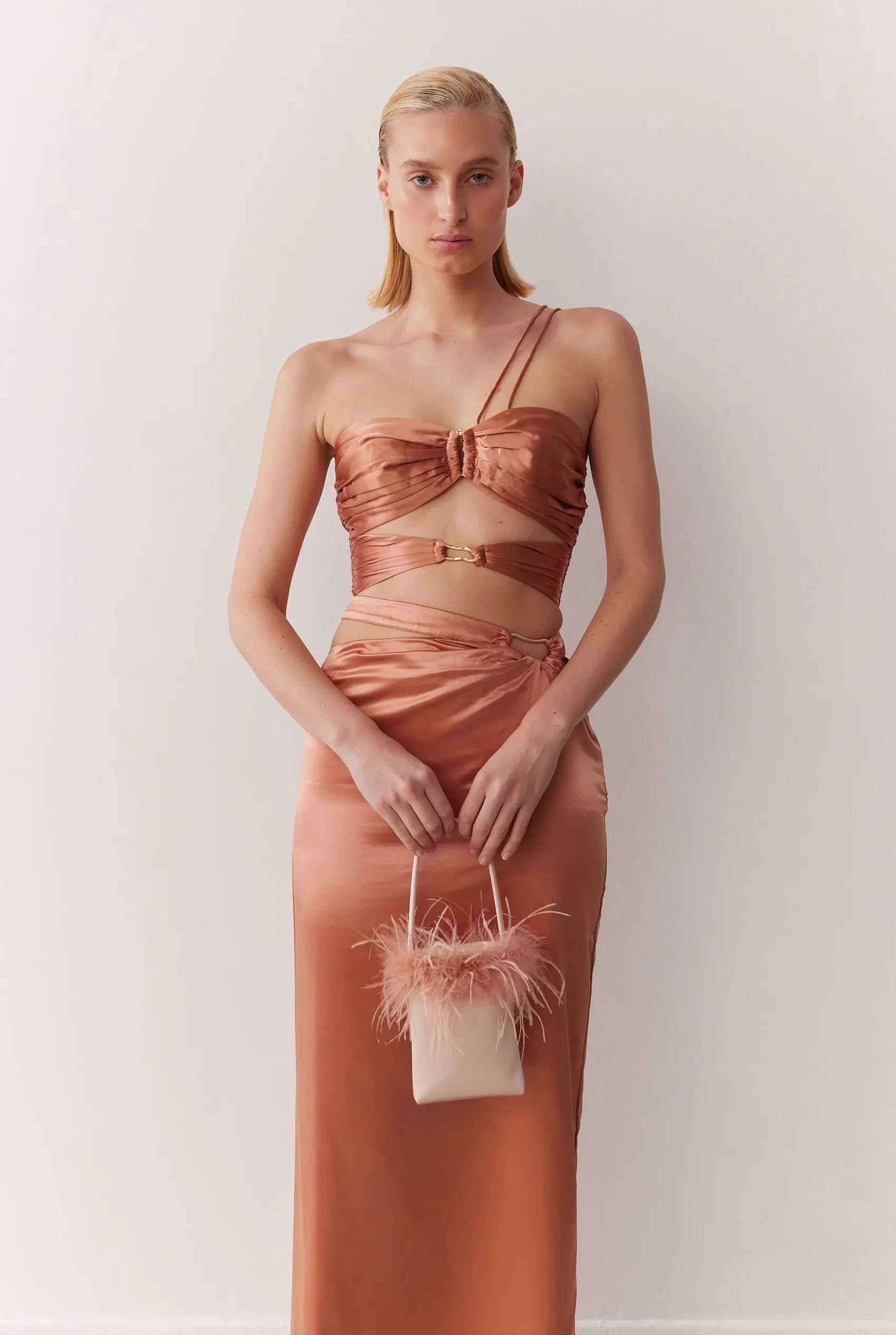 All product imagery and descriptions have been kindly provided by Boskemper. Oh Margo! Gathered paneling with gold trim & double straps. Perfect for layering over your favourite tee or shirt… & on her own. Worn with Margot Skirt
